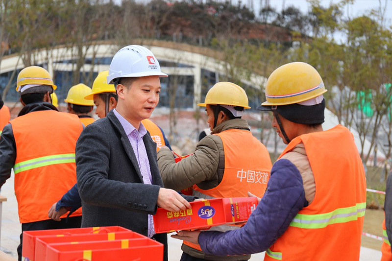 1月14日起,yl23455永利集团工会开展以“严冬送温暖 慰问暖人心”为主题的慰问运动,公司总司理张成毅、副总司理罗洋划分带队慰问简州新城人才公园、标准厂房B项目现场,为坚守在建设一线的施工职员送去姜茶、饼干等慰问品;特殊嘱咐各人在户外作业,尤其是高处作业、带水作业时一定要做好保暖、清静步伐,避免因低温导致手脚僵硬造成清静事故。